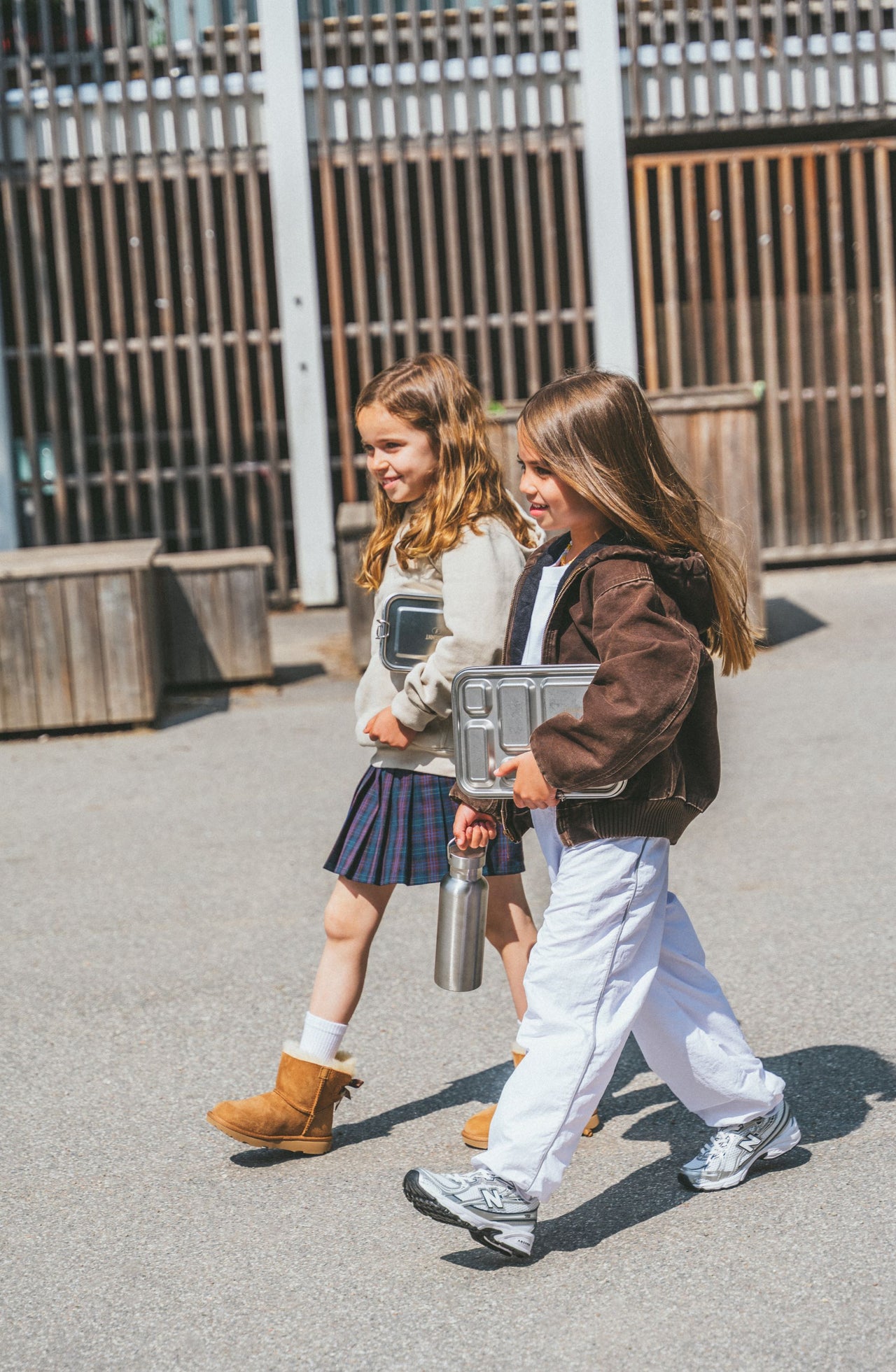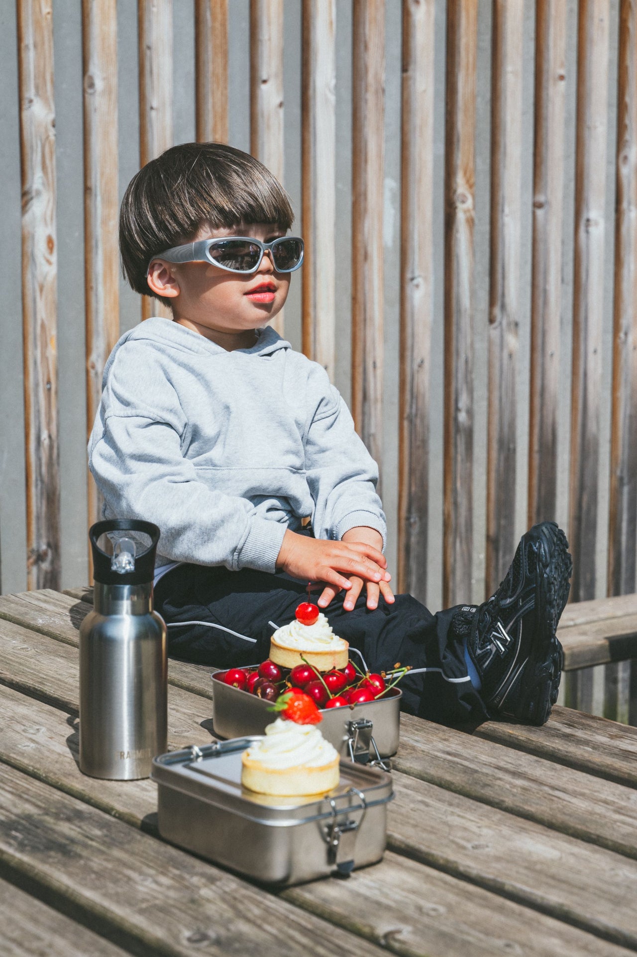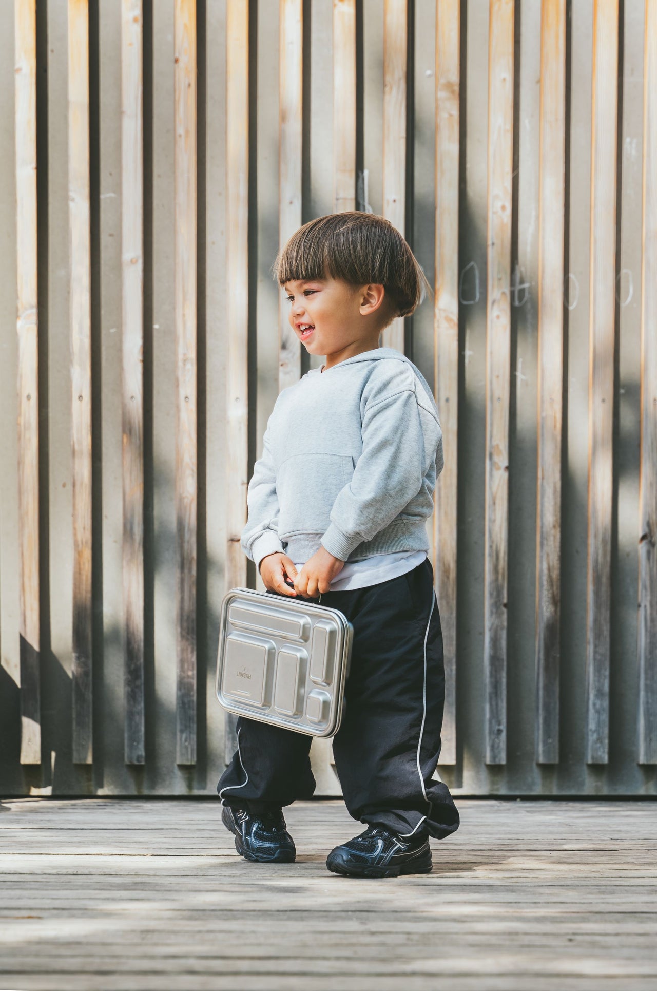 Designed for kindergarten and school, the collection includes durable steel tableware, lunch boxes, and bottles — practical, minimal, and made to last.